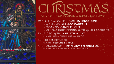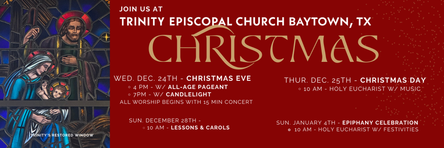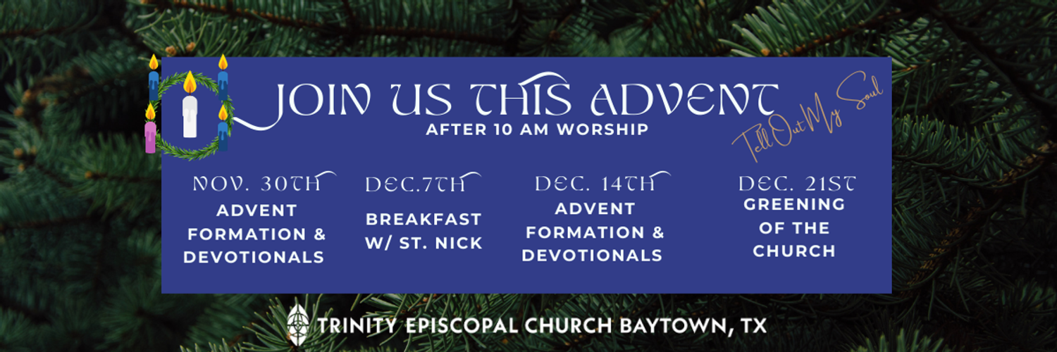 November 30: Holy Eucharist, 10am, with organ, praise band, and choir, in person and streamed to the Trinity Page on FaceBook Live, Worship bulletin HERE. Pot Luck, All ages formation after service