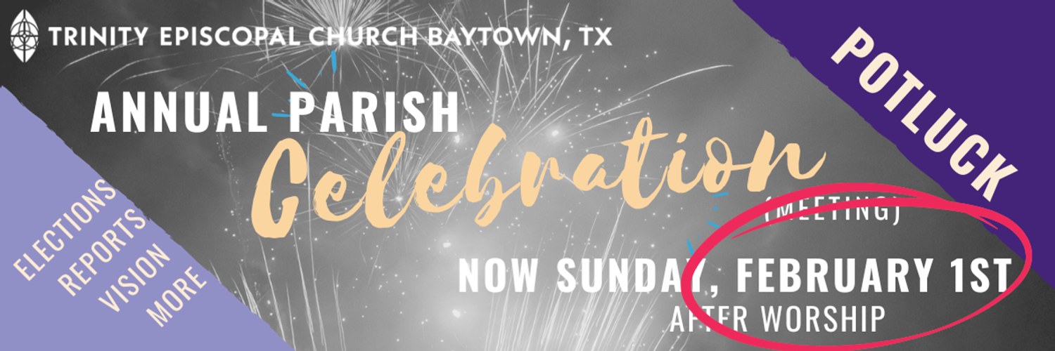 February 1: Holy Eucharist, 10am, with organ, choir, and praise band, in person and streamed to the Trinity Page on FaceBook Live worship bulletin HERE. Annual Parish Meeting and Potluck